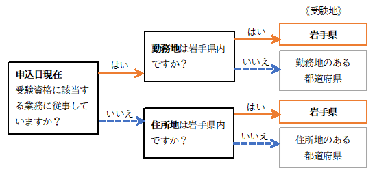 | 受験資格に該当する業務に従事している場合 | 岩手県で勤務 | 岩手県 |